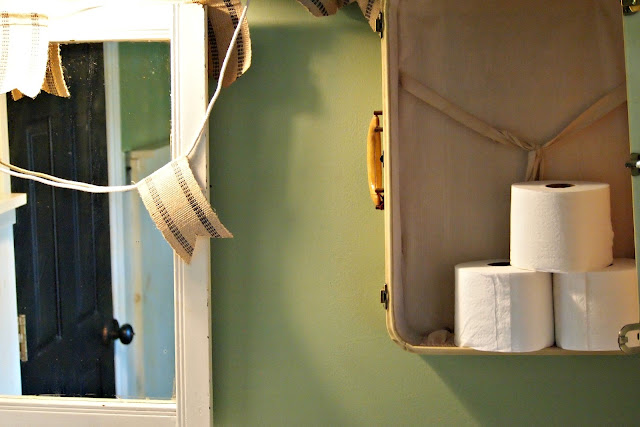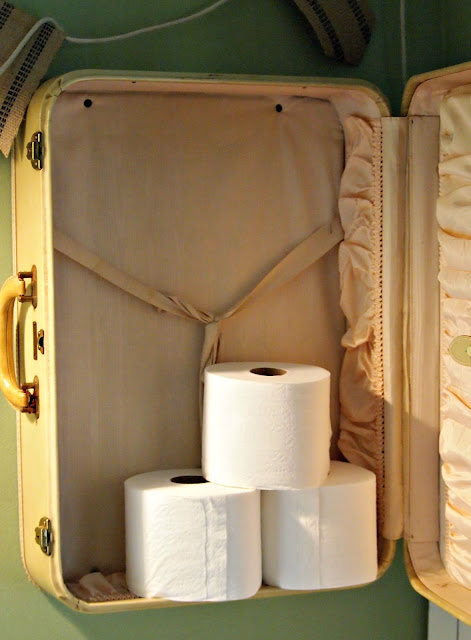 I used a suitcase fastened to the wall to store extra rolls of toilet paper.