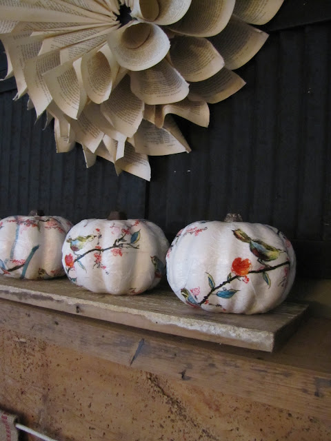 Those pumpkins are darling! And the wreath is to die for! I have been needing to make another book page wreath. Think this was the inspiration I needed!