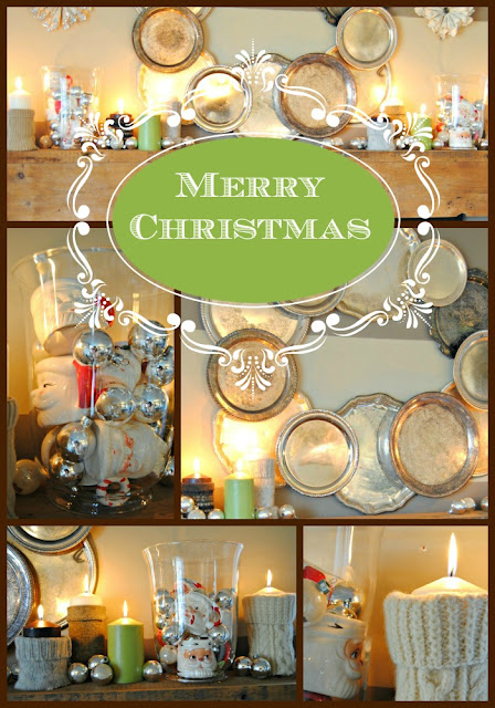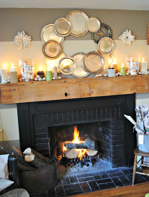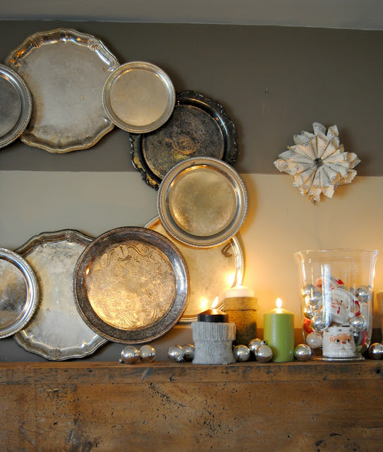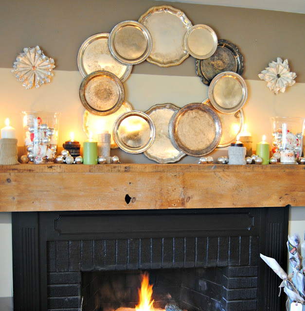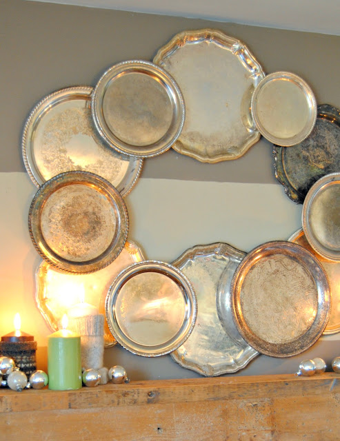 This year's mantel is one of my favs! I collected silver trays throughout the year just for the purpose of making a wreath out of them at Christmas.