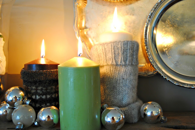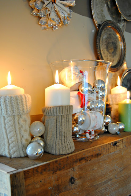 The candle sweater sleeves were left over from my sweater pumpkins at Halloween.