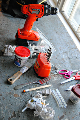 And I set up a little tool/work station. You never know when you'll need a fork.
