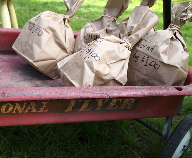 8. Make mystery goodie bags (mostly with kids knick knack toys in them). I guarantee every kid that stops at your yard sale will be mesmerized and purchase at least one bag.
