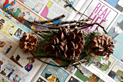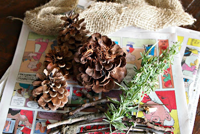 I tucked several kindling packets into an old rusty bucket, along with some pine tree cuttings.